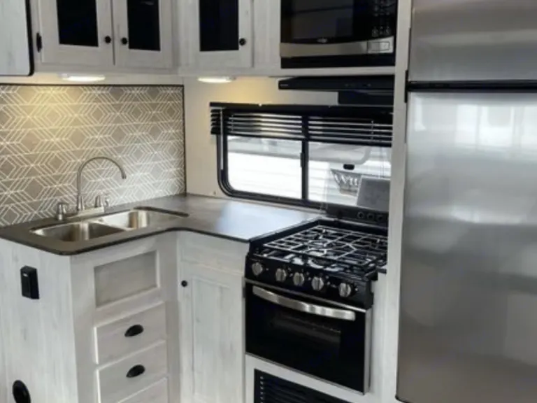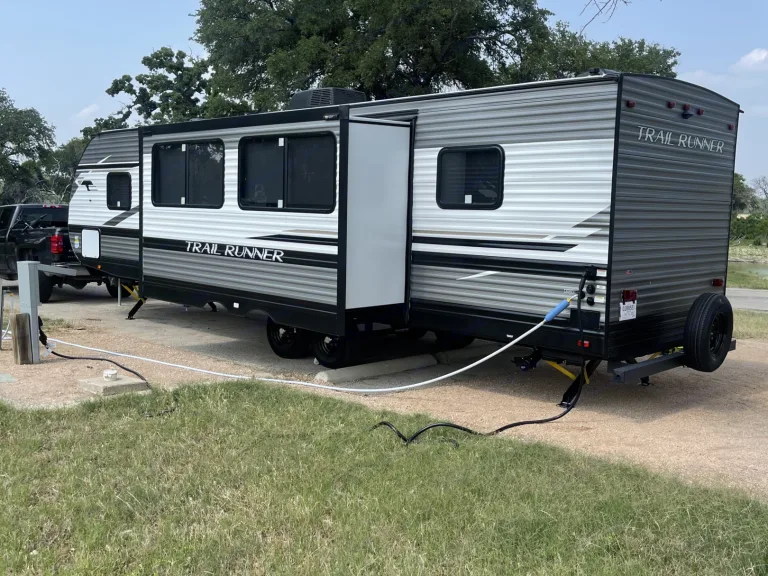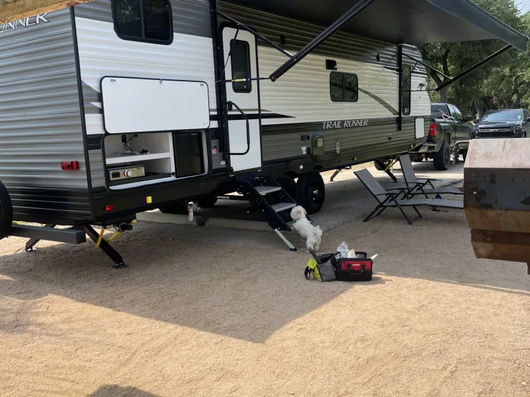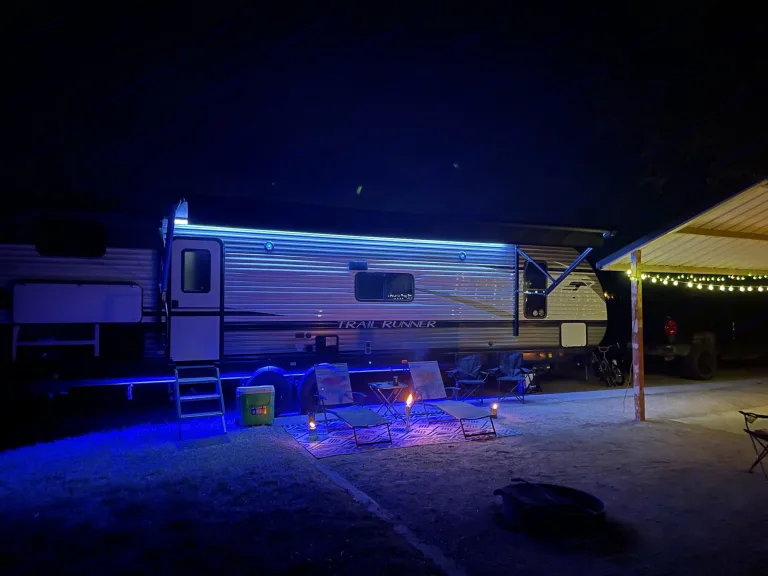 We only offer Delivery at this time. Our unit sleeps 8 people, there is a bunk house that has a single bathroom, a couch that pulls out, and a dining room table that folds for additional sleeping space. There is a private room with a queen bed, the room also has charging ports and universal phone chargers at bedside. Private room is Cpap ready. The full-size bathroom has a stand up shower, we provide RV friendly toilet paper, and two towels. The bunk house and private room come with linen. Our kitchen has a single serve Keurig maker and essential cookware, as well as a manual can opener and knives with a cutting board. There is 3 TVs in our unit, and a Bluetooth stereo system that has zones inside and outside the unit. Outside there is a mini kitchen that includes a griddle and mini fridge. We provide 4 fold up chairs, that are stored in the storage compartment.Other things to noteOur unit uses propane for indoor and outdoor kitchen, there is an additional charge to refill propane tanks. Our unit is a 50 amp setup but we also provide a 30amp converter. We ask when you leave our unit please take all trash out and clean up. If anything breaks please just let us know so it can be fixed. We not only rent this unit out but we use it to make memories with our family as well.