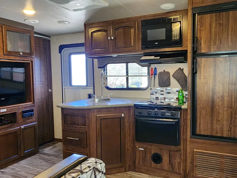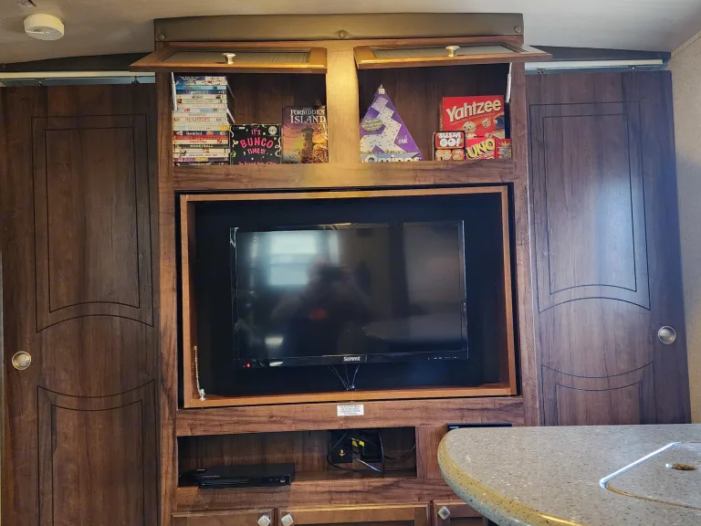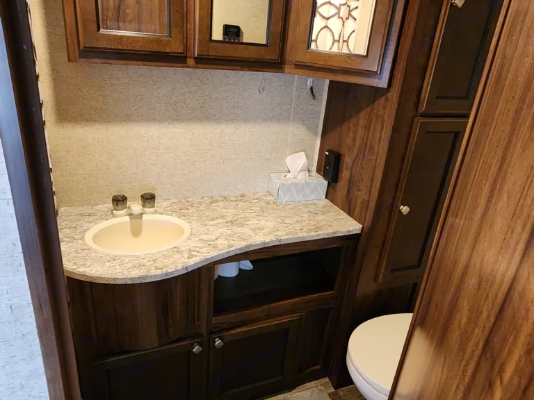 - Bathroom with a shower, sink, and toilet for convenience. RV toilet tissue included.