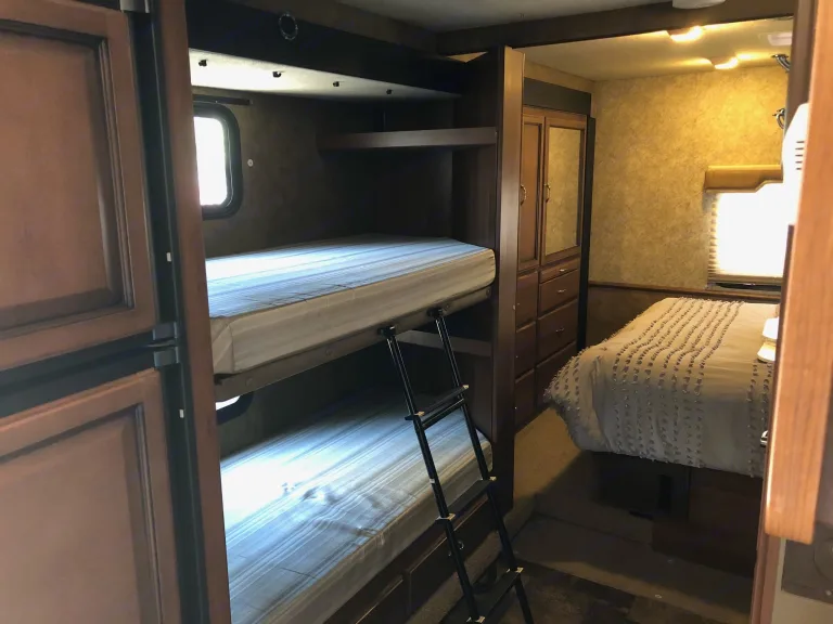 Awesome Class C with two large slides, rear master bed room, two bunk beds, over-cab loft and more. Comes with kitchen supplies, pots, pans, propane BBQ, camping chairs, outdoor rug, 3 tvs, etc to make your rental experience as easy as possible. This rig is very clean and we are proud to have it in excellent condition for you to enjoy!This RV is very easy to drive and the Triton V10 has plenty of power to get around. We really enjoy our time in the RV and hope you do as well.It has 8 seat belts, sleeps 8 comfortably, lots of storage, all new tires, heater, air conditioning, 2 slide-outs, generator, full bathroom, full kitchen, exterior electric power connections, 3 TVs, DVD, surround sound, manual awning, exterior shower.55 Gal gas tank (averages 8-12 mi/gal) - please return full or $400 charge applies