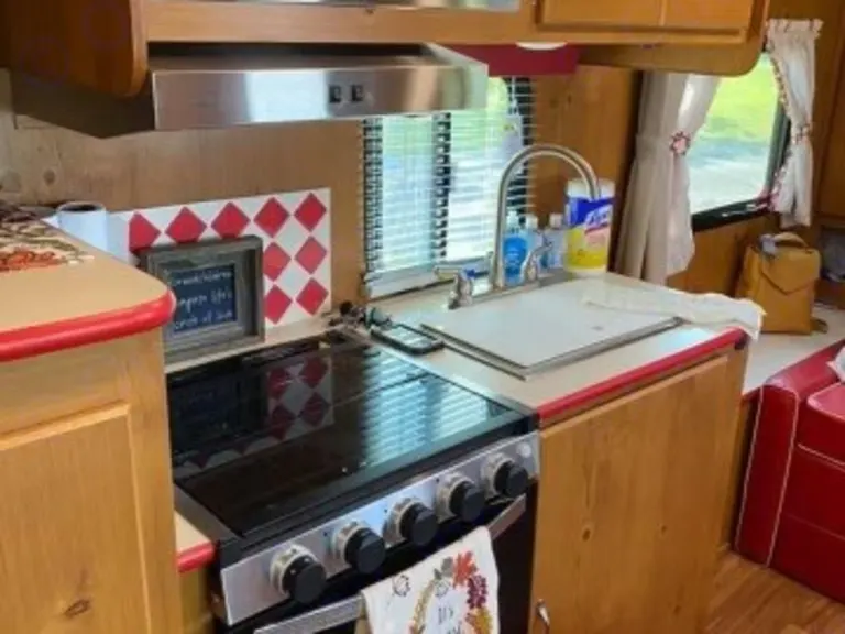 Step back in time in our vintage style travel trailer with all the modern comforts of home. Our retro looking trailer has everything you need to enjoy the great outdoors while feeling a little nostalgic. We love the vibe we get when where camping in our trailer, and everyone that sees it, loves it.What's includedFresh linens, cookware, utensils