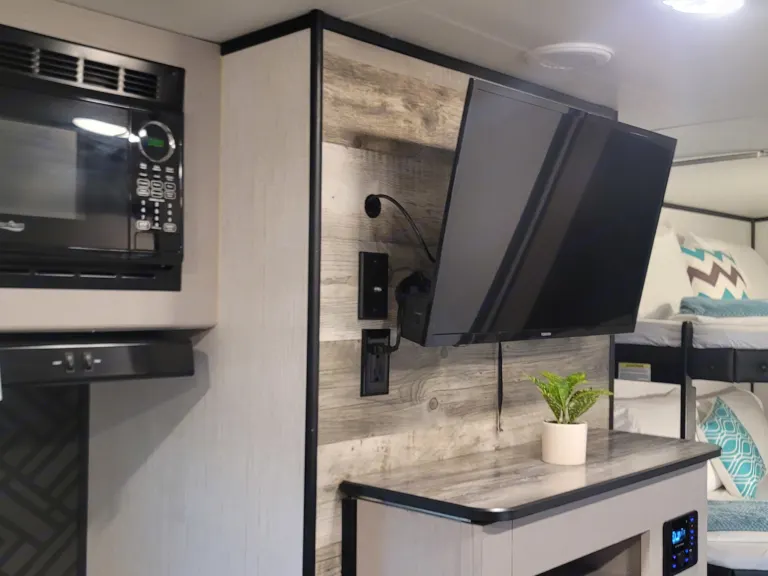 • Spacious RV, sleeps up to 8 people. Full Kitchen, Full bathroom, King